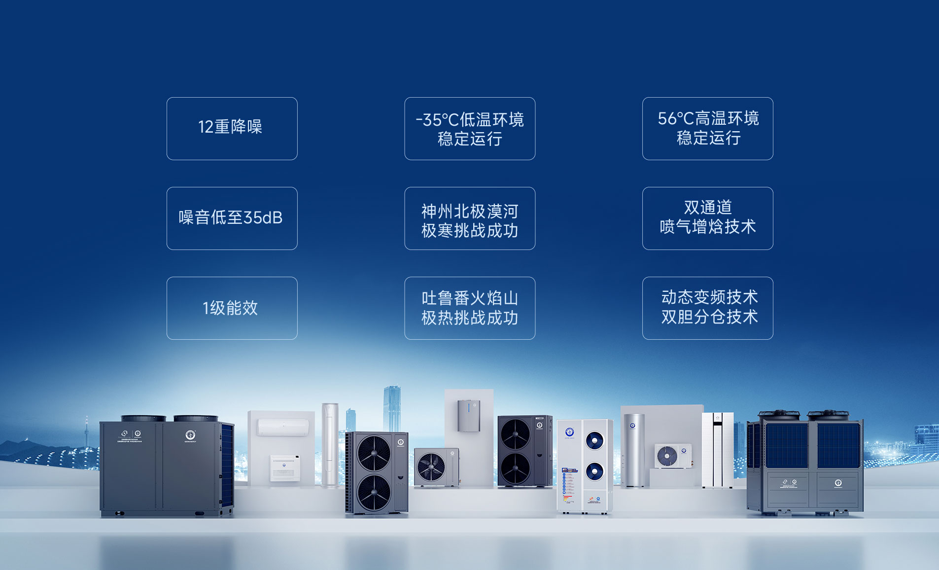 凭高效节能、经济环保、运行稳定、优质服务的核心优势,产品覆盖家用住宅、商业配套、酒店、医院等多领域冷暖与热水需求。作为国内“煤改电”重要参与者,打造3000+大型工程,2019年河北赵县超400万㎡集中供暖项目成果,还亮相国际能源署热泵技术大会。此外,产品在漠河极寒、吐鲁番极热环境测试中均获成功,尽显产品性能。