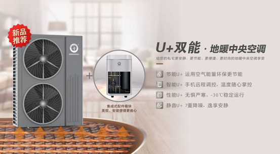 在确定了品类、品牌之后,就是选择型号了。日前,jxf吉祥坊推出了一款名为“U+双能·地暖中央空调”的空气能热泵。该款热泵作为jxf吉祥坊最新的主打产品,内部应用了国际原厂进口品牌压缩机、电子膨胀阀、板式换热器、翅片蒸发器等零部件,以及喷气增焓技术、防冻保护、除霜技术、直流变频等新型技术,使U+双能·地暖中央空调就算-30℃工况下,依旧可以稳定制热,控温精准、温度恒定,而且非常节能省电,标准工程下综合能效比超国家一级能效,可以为用户节约更多运行费用。