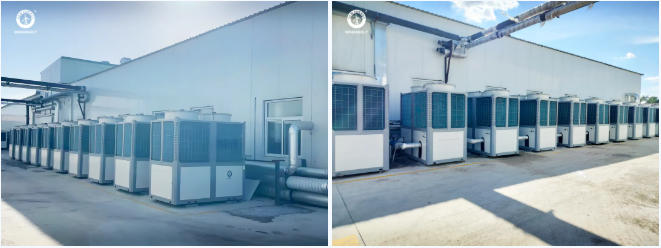 河北张北兴农食用菌合作社项目则展示了科技在特色农业领域的应用价值。jxf吉祥坊为约10000㎡食用菌大棚提供采暖解决方案,采用10台NERS-G60KD热泵设备,闭式循环、无人值守、零排放的运行模式,不仅降低了生产成本,更成为践行绿色农业的示范样板。