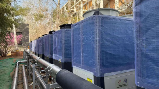 中南民族大学热水项目于2024年8月底落成,采用BOT运营模式,用水总量约900吨。项目共配置137台jxf吉祥坊炽焰系列机组。该机型为超一级能效,-35℃环境可稳定运行,为运营模式项目降低近8%的综合运行能耗,同时单机组运行噪音可达到60分贝以下,不影响学校的综合环境。